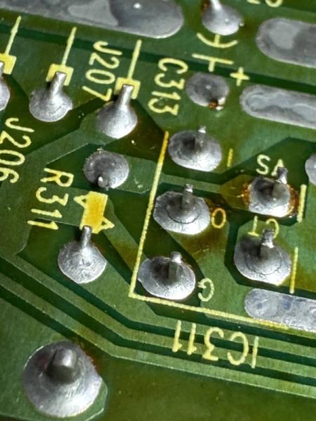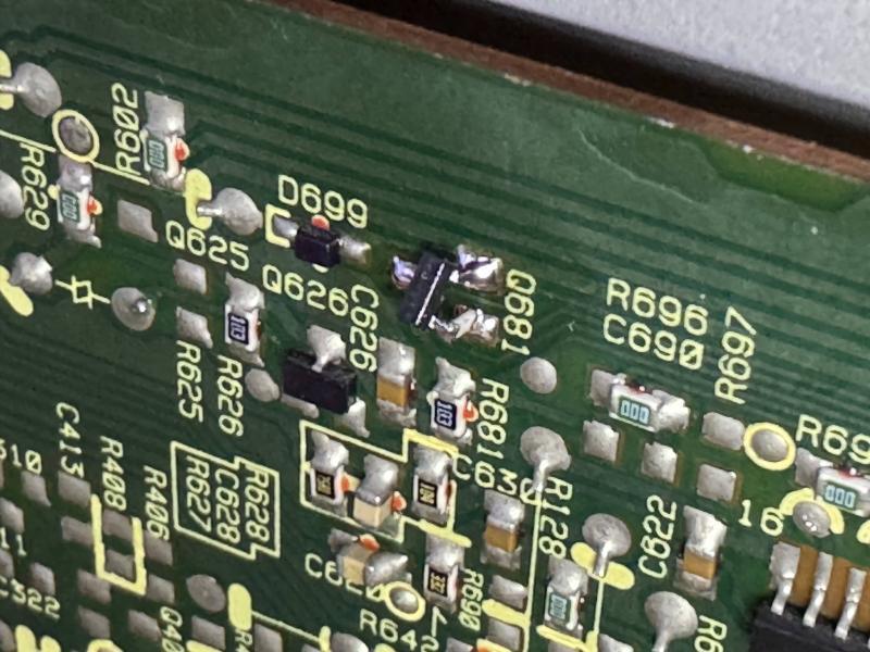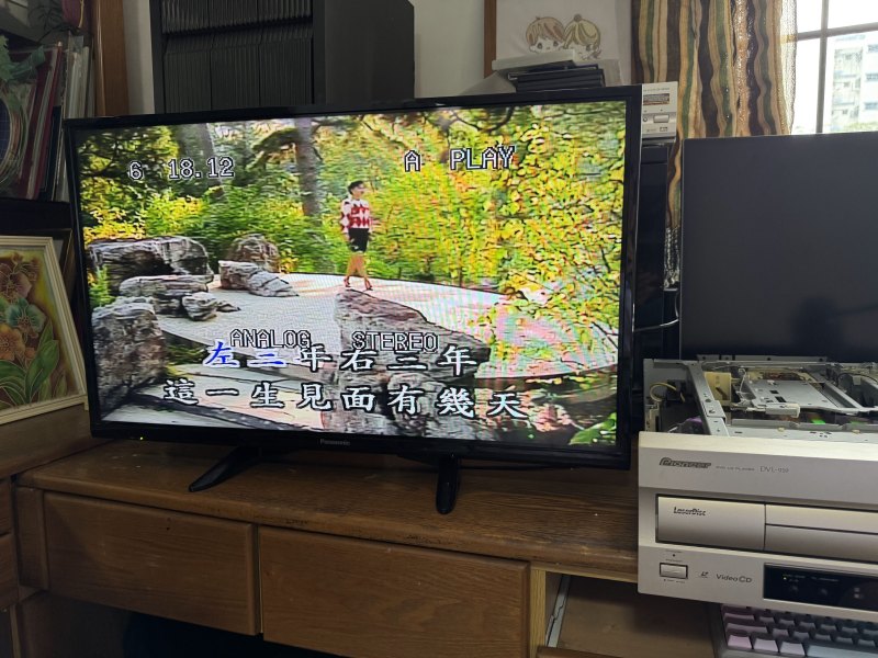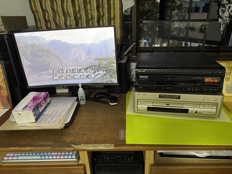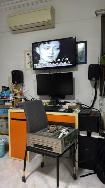 The case metal edges is rusty and thus paint it with silver ink pen. Top DVD board and bottom main board is clean by ultra sonic and some magic clean solutions.  After assembly, still cannot work or power on.  Later found switched 5V voltage low, touching the regulator output pin is unstable voltage.  Then found the cold solder joint.  Thus resolder the whole power supply boards again.  Stable voltage can immediately power on the set.  The alps power switch also shorted and replaced by a new one.  Color also missing after repair power board and later trace to a switch transistor NG.  Replaced it with MMBT3904 and 1.5k resistors as no stock switch part and working well.  Side B track 0 and 1 a bit jam and cause the track jump back and repeated short period.  remove and grease it a bit better, may be need alignment again!