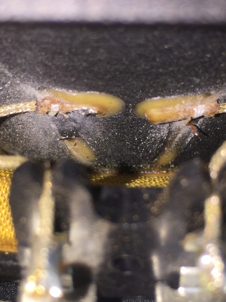 Socket on amp board plastic crack and damage: remove socket and solder the wire direct on board, other side has socket and thus good enough.