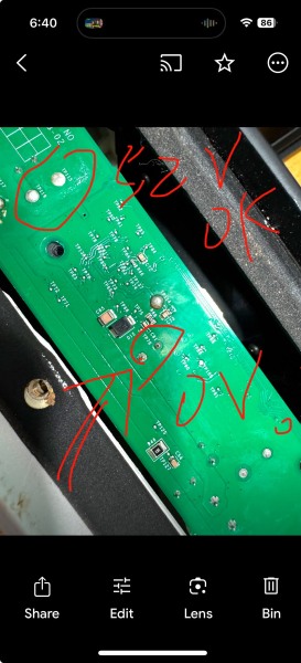 Capacitors on power all dried up except the signal path BP capacitors. Action: changed