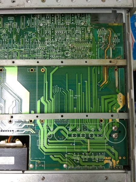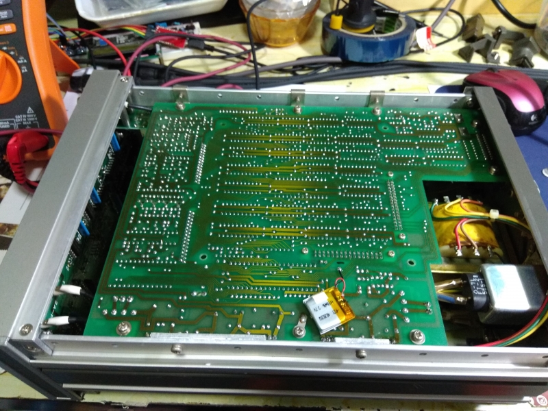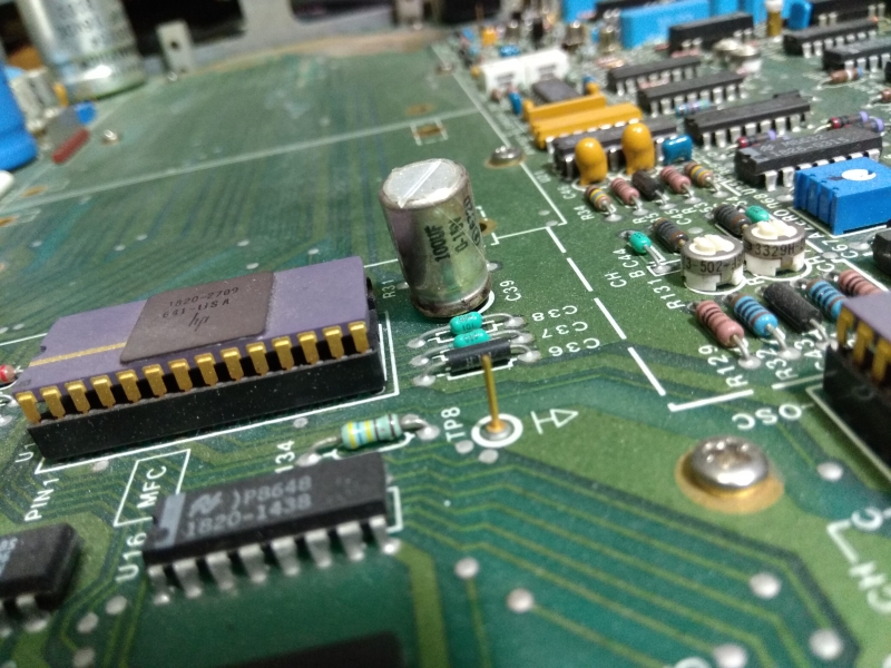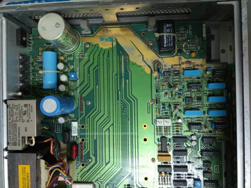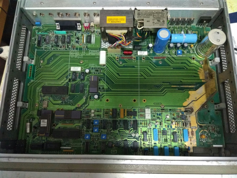 Pick up this in junk yard for a low price and found inside all corrosive due to battery leakage! After I do a cleaning and washing on the main PCB and replace all 6 pcs 100uF 15V cap with new Panasonic FC capacitors, the set can work as it is. Gone through performance check and all ok, self diagnostic also all OK, frequency can measure up to 105 MHz and level down to 35mVpp which is a bit better than spec. Date code of part is mostly at year 1986, this this is a 30 years old hp equipment and is still working fine! Made in USA.